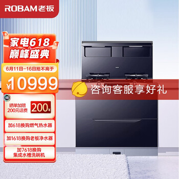 老板(Robam)9YX13升级款高性能消毒柜款集成灶 三面拢烟 烟灶消一体灶 家用二星级125L消毒柜(天然气)活动到手价格10999元!
