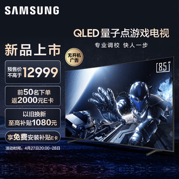 三星(SAMSUNG)85英寸专业游戏电视 3+64G 4K超高清 120Hz高刷 HDMI2.1 低延迟5.8ms QA85QX3CAJXXZ活动到手价格12999元!